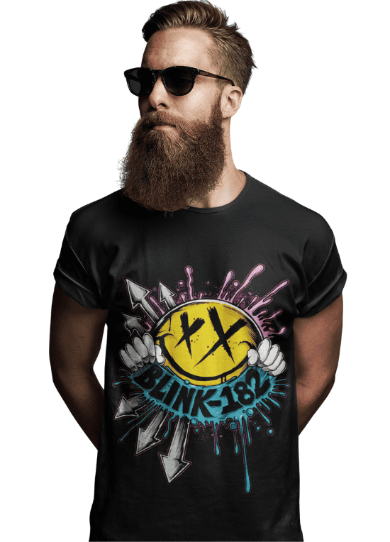 Además, la playera te brinda una comodidad excepcional gracias a su fabricación en materiales de alta calidad que aseguran durabilidad y suavidad, para que puedas llevarla todo el día sin renunciar a tu estilo. Su diseño divertido captura la esencia inconfundible de Blink-182 y te hará destacar sin esfuerzo en cualquier entorno.